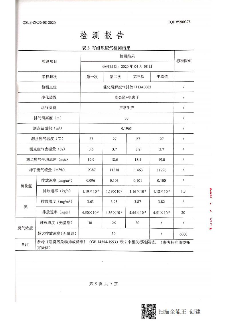 南通市康橋油脂有限公司5月份環(huán)境檢測(cè)報(bào)告