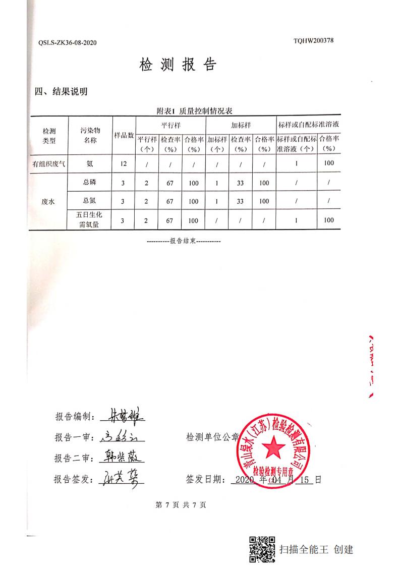 南通市康橋油脂有限公司4月份環(huán)境檢測(cè)報(bào)告