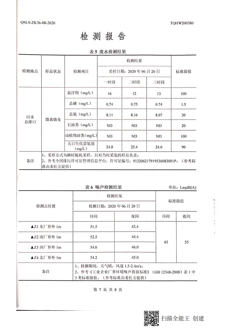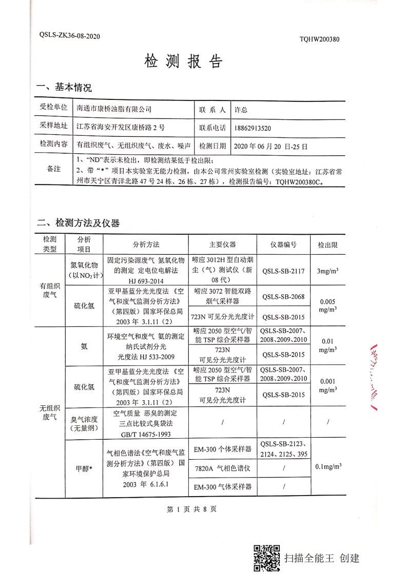 南通市康橋油脂有限公司7月份環(huán)境檢測(cè)報(bào)告