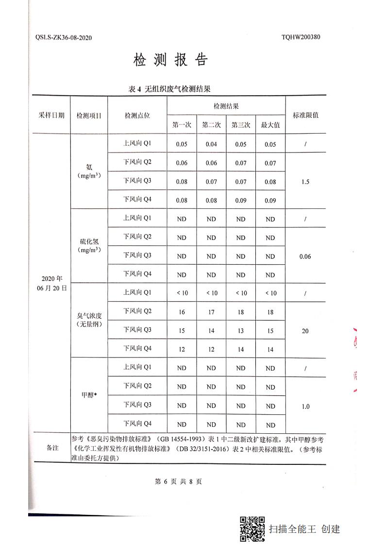 南通市康橋油脂有限公司6月份環(huán)境檢測(cè)報(bào)告